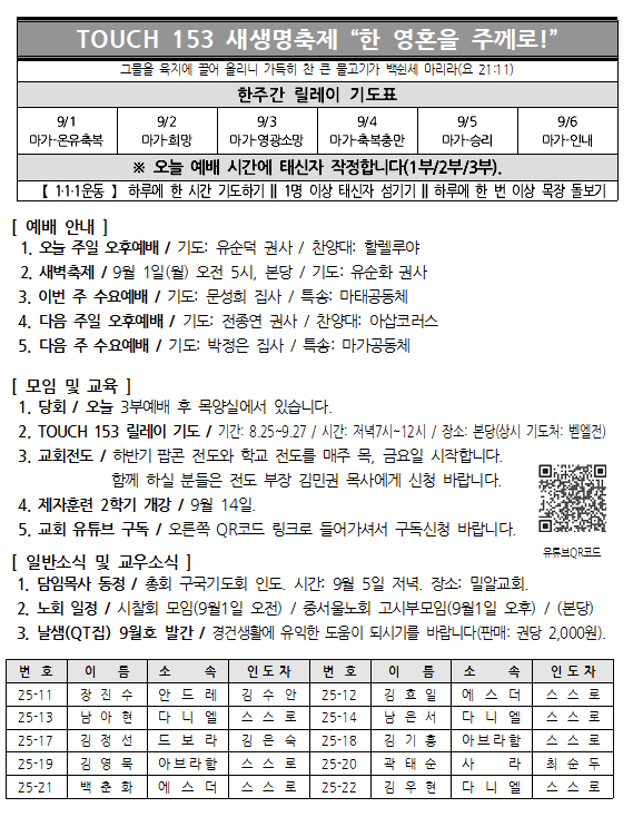 2025년 8월 31일 주보 페이지 정보 작성자 서버관리 댓글 작성일25-09-03 본문 2025년 8월 31일 주보 댓글목록 목록 교회주보 목록 번호 제목 글쓴이 조회 날짜 833 2025년 10월 12일 주보 서버관리 14 2025-10-12 832 2025년 10월 5일 주보 서버관리 137 2025-10-04 831 2025년 9월 28일 주보 서버관리 96 2025-10-04 830 2025년 9월 21일 주보 서버관리 187 2025-09-24 829 2025년 9월 14일 주보 서버관리 235 2025-09-16 828 2025년 9월 7일 주보 서버관리 462 2025-09-06 열람중 2025년 8월 31일 주보 서버관리 290 2025-09-03 826 2025년 8월 24일 주보 서버관리 864 2025-08-24 825 2025년 8월 17일 주보 서버관리 1058 2025-08-24 824 2025년 8월 10일 주보 서버관리 776 2025-08-10 823 2025년 8월 3일 주보 서버관리 843 2025-08-10 822 2025년 7월 27일 주보 서버관리 625 2025-08-10 821 2025년 7월 20일 주보 서버관리 875 2025-08-10 820 2025년 7월 13일 주보 서버관리 993 2025-07-15 819 2025_7_6 주보 서버관리 774 2025-07-05 818 2025. 6. 29 주보 서버관리 893 2025-07-01 열린1페이지 2페이지 3페이지 4페이지 5페이지 6페이지 7페이지 8페이지 9페이지 10페이지 다음 맨끝 검색대상 제목 내용 제목+내용 회원아이디 회원아이디(코) 글쓴이 글쓴이(코) 검색어 필수 검색