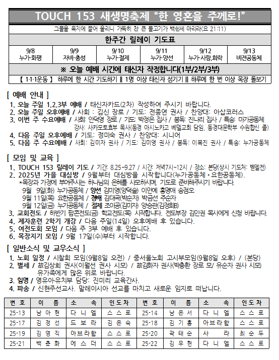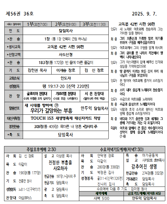 2025년 9월 7일 주보 페이지 정보 작성자 서버관리 댓글 작성일25-09-06 본문 2025년 9월 7일 주보 댓글목록 목록 교회주보 목록 번호 제목 글쓴이 조회 날짜 833 2025년 10월 12일 주보 서버관리 14 2025-10-12 832 2025년 10월 5일 주보 서버관리 137 2025-10-04 831 2025년 9월 28일 주보 서버관리 98 2025-10-04 830 2025년 9월 21일 주보 서버관리 189 2025-09-24 829 2025년 9월 14일 주보 서버관리 237 2025-09-16 열람중 2025년 9월 7일 주보 서버관리 464 2025-09-06 827 2025년 8월 31일 주보 서버관리 290 2025-09-03 826 2025년 8월 24일 주보 서버관리 864 2025-08-24 825 2025년 8월 17일 주보 서버관리 1058 2025-08-24 824 2025년 8월 10일 주보 서버관리 776 2025-08-10 823 2025년 8월 3일 주보 서버관리 843 2025-08-10 822 2025년 7월 27일 주보 서버관리 625 2025-08-10 821 2025년 7월 20일 주보 서버관리 875 2025-08-10 820 2025년 7월 13일 주보 서버관리 993 2025-07-15 819 2025_7_6 주보 서버관리 774 2025-07-05 818 2025. 6. 29 주보 서버관리 893 2025-07-01 열린1페이지 2페이지 3페이지 4페이지 5페이지 6페이지 7페이지 8페이지 9페이지 10페이지 다음 맨끝 검색대상 제목 내용 제목+내용 회원아이디 회원아이디(코) 글쓴이 글쓴이(코) 검색어 필수 검색