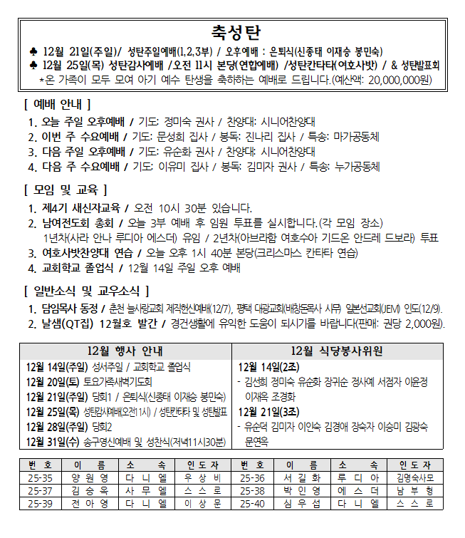 2025년 12월 7일 주보 페이지 정보 작성자 서버관리 댓글 작성일25-12-07 본문 2025년 12월 7일 주보 댓글목록 목록 교회주보 목록 번호 제목 글쓴이 조회 날짜 847 2026년 1월 18일 주보 서버관리 74 2026-01-17 846 2026년 1월 11일 주보 서버관리 66 2026-01-17 845 2026년 1월 4일 주보 서버관리 158 2026-01-07 844 2025년 12월 28일 주보 서버관리 169 2025-12-28 843 2025년 12월 21일 주보 서버관리 118 2025-12-27 842 2025년 12월 14일 주보 서버관리 247 2025-12-14 열람중 2025년 12월 7일 주보 서버관리 290 2025-12-07 840 2025년 11월 30일 주보 서버관리 252 2025-12-02 839 2025년 11월 23일 주보 서버관리 251 2025-11-25 838 2025년 11월 16일 주보 서버관리 287 2025-11-16 837 2025년 11월 9일 주보 서버관리 315 2025-11-11 836 2025년 11월 2일 주보 서버관리 297 2025-11-04 835 2025년 10월 26일 주보 서버관리 329 2025-10-28 834 2025년 10월 19일 새생명축제 주보 서버관리 364 2025-10-22 833 2025년 10월 12일 주보 서버관리 398 2025-10-12 832 2025년 10월 5일 주보 서버관리 446 2025-10-04 열린1페이지 2페이지 3페이지 4페이지 5페이지 6페이지 7페이지 8페이지 9페이지 10페이지 다음 맨끝 검색대상 제목 내용 제목+내용 회원아이디 회원아이디(코) 글쓴이 글쓴이(코) 검색어 필수 검색