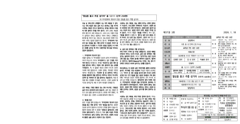 2026년 1월 18일 주보 페이지 정보 작성자 서버관리 댓글 작성일26-01-17 본문 2026년 주보모음 댓글목록 목록 교회주보 목록 번호 제목 글쓴이 조회 날짜 열람중 2026년 1월 18일 주보 서버관리 70 2026-01-17 846 2026년 1월 11일 주보 서버관리 62 2026-01-17 845 2026년 1월 4일 주보 서버관리 156 2026-01-07 844 2025년 12월 28일 주보 서버관리 167 2025-12-28 843 2025년 12월 21일 주보 서버관리 116 2025-12-27 842 2025년 12월 14일 주보 서버관리 245 2025-12-14 841 2025년 12월 7일 주보 서버관리 286 2025-12-07 840 2025년 11월 30일 주보 서버관리 250 2025-12-02 839 2025년 11월 23일 주보 서버관리 249 2025-11-25 838 2025년 11월 16일 주보 서버관리 285 2025-11-16 837 2025년 11월 9일 주보 서버관리 313 2025-11-11 836 2025년 11월 2일 주보 서버관리 295 2025-11-04 835 2025년 10월 26일 주보 서버관리 327 2025-10-28 834 2025년 10월 19일 새생명축제 주보 서버관리 362 2025-10-22 833 2025년 10월 12일 주보 서버관리 396 2025-10-12 832 2025년 10월 5일 주보 서버관리 444 2025-10-04 열린1페이지 2페이지 3페이지 4페이지 5페이지 6페이지 7페이지 8페이지 9페이지 10페이지 다음 맨끝 검색대상 제목 내용 제목+내용 회원아이디 회원아이디(코) 글쓴이 글쓴이(코) 검색어 필수 검색